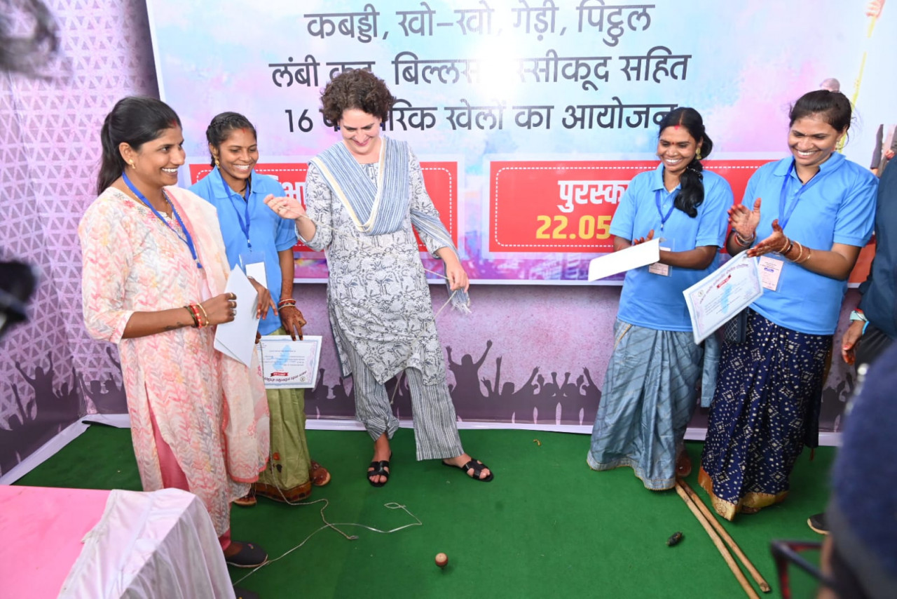 भिलाई नगर : महिला समृद्धि सम्मेलन, जयंती स्टेडियम भिलाई नगर में जब मुख्यमंत्री की भंवरा खेलने वाली बात सुनकर श्रीमती गांधी मुस्करा रही थी, अपने संबोधन के बीच मुख्यमंत्री श्री भूपेश बघेल ने कहा कि जब प्रियंका दीदी ने भंवरा खेला तो मुझे लगा वे ठीक तरह से नहीं चला पाएंगी लेकिन उन्होंने बहुत बढ़िया तरीके से भंवरा चलाया, मैं खुद हैरान रह गया। इस बात को सुनकर श्रीमती प्रियंका गांधी ने भी मुस्कुराकर अपनी प्रतिक्रिया दी।