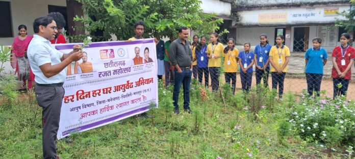 एमसीबी, छत्तीसगढ़/रजत जयंती महोत्सव एवं हर दिन हर घर आयुर्वेद के तृतीय चरण के अंतर्गत 10 अक्टूबर से 17 अक्टूबर 2025 तक कलेक्टर डी. राहुल वेंकट के निर्देश पर एवं जिला स्वास्थ्य अधिकारी अविनाश खरे के मार्गदर्शन में जिले भर में विभिन्न शैक्षणिक संस्थानों के विद्यार्थियों के लिए स्वास्थ्य, स्वच्छता और आयुर्वेदिक ज्ञान को बढ़ावा देने के अनेक कार्यक्रम आयोजित किए गए। विगत 11 अक्टूबर 2025 को DAV स्कूल के विद्यार्थियों ने स्वास्थ्य और स्वच्छता के प्रति जागरूकता बढ़ाने हेतु हाट बाजार में रैली निकालकर प्रदर्शन किया। इस अवसर पर आयुर्वेद चिकित्सक डॉ. एस.पी. केसरवानी ने विद्यार्थियों को हर दिन हर घर आयुर्वेद के तहत स्वास्थ्य और स्वच्छता संबंधी आयुर्वेदिक नियमों की जानकारी दी। इस कार्यक्रम में 200 लाभार्थियों ने भाग लिया। साथ ही रजत जयंती सप्ताह के अवसर पर माध्यमिक शाला कछोड़ के विद्यार्थियों को शासकीय आयुर्वेद औषधालय के औषधि उद्यान का भ्रमण कराया गया।