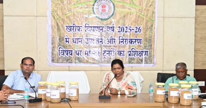 रायपुर, छत्तीसगढ़! समर्थन मूल्य पर धान खरीदी बायोमैट्रिक पद्धति से की जाएगी। किसानों की सुविधा के लिए धान उपार्जन केन्द्रों में ऑफलाईन के अलावा मोबाइल एप के माध्यम से ऑनलाईन टोकन जारी किए जाएंगे। सचिव, खाद्य एवं नागरिक आपूर्ति निगम, प्रबंध संचालक विपणन संघ एवं संचालक खाद्य विभाग के मार्गदर्शन में आज सरगुजा एवं दुर्ग संभाग के अधिकारी-कर्मचारियों को व्यवस्थित और पारदर्शी ढंग से धान खरीदी सम्पन्न कराने के लिए पूरी प्रक्रिया की जानकारी दी गई। अलग-अलग संभागों के लिए प्रशिक्षण कार्यक्रम 17 अक्टूबर तक चलेगी। धान खरीदी का कार्य 15 नवंबर से प्रारंभ होगा।