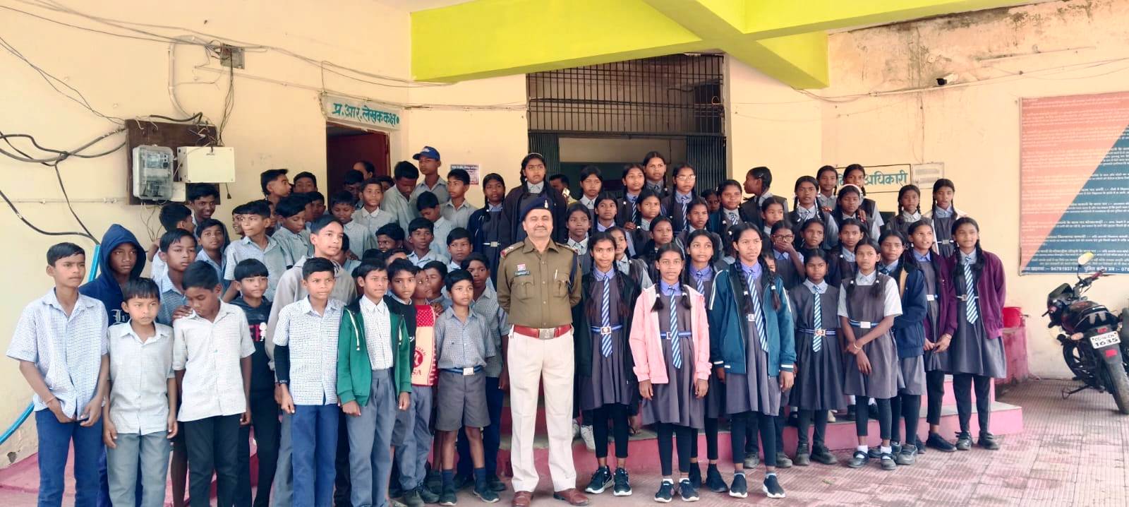 एमसीबी, छत्तीसगढ़। खड़गवां थाना परिसर आज बच्चों की जिज्ञासा और उत्साह से भरा रहा, जब मिडिल एवं प्राइमरी स्कूल खड़गवां के लगभग 100 छात्र-छात्राओं को पुलिस द्वारा शैक्षणिक भ्रमण कराया गया। इस विशेष भ्रमण का उद्देश्य बच्चों को पुलिस की कार्यप्रणाली, सुरक्षा, कानून-व्यवस्था, साइबर जागरूकता और ट्रैफिक नियमों की बुनियादी जानकारी देकर जागरूक बनाना था। भ्रमण के दौरान पुलिस अधिकारी थाना प्रभारी सुनील तिवारी ने बच्चों को थाना परिसर में होने वाले विभिन्न कार्यों, शिकायत दर्ज करने की प्रक्रिया, पेट्रोलिंग, नियंत्रण कक्ष की व्यवस्था तथा अपराध रोकथाम के लिए किए जाने वाले प्रयासों के बारे में विस्तार से जानकारी दी।