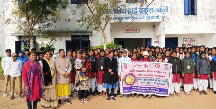 एमसीबी, छत्तीसगढ़। जिला कलेक्टर एवं जिला दंडाधिकारी डी. राहुल वेंकट के निर्देशानुसार तथा जिला कार्यक्रम अधिकारी आर.के. खाती के मार्गदर्शन में महिला एवं बाल विकास विभाग द्वारा संचालित महिला सशक्तीकरण केंद्र हब के माध्यम से बेटी बचाओ बेटी पढ़ाओ योजना अंतर्गत 16 दिवसीय विशेष जागरूकता अभियान लगातार गति पकड़ रहा है। इसी कड़ी में आज शासकीय हाई स्कूल बंजी में जागरूकता कार्यक्रम का आयोजन किया गया, जिसका नेतृत्व जिला समन्वयक श्रीमती तारा कुशवाहा ने किया। कार्यक्रम का मुख्य उद्देश्य छात्राओं को लिंग आधारित हिंसा, डिजिटल हिंसा तथा लैंगिक भेदभाव से होने वाले दुष्प्रभावों से सजग करना और उन्हें अपने अधिकारों के प्रति जागरूक बनाना रहा।