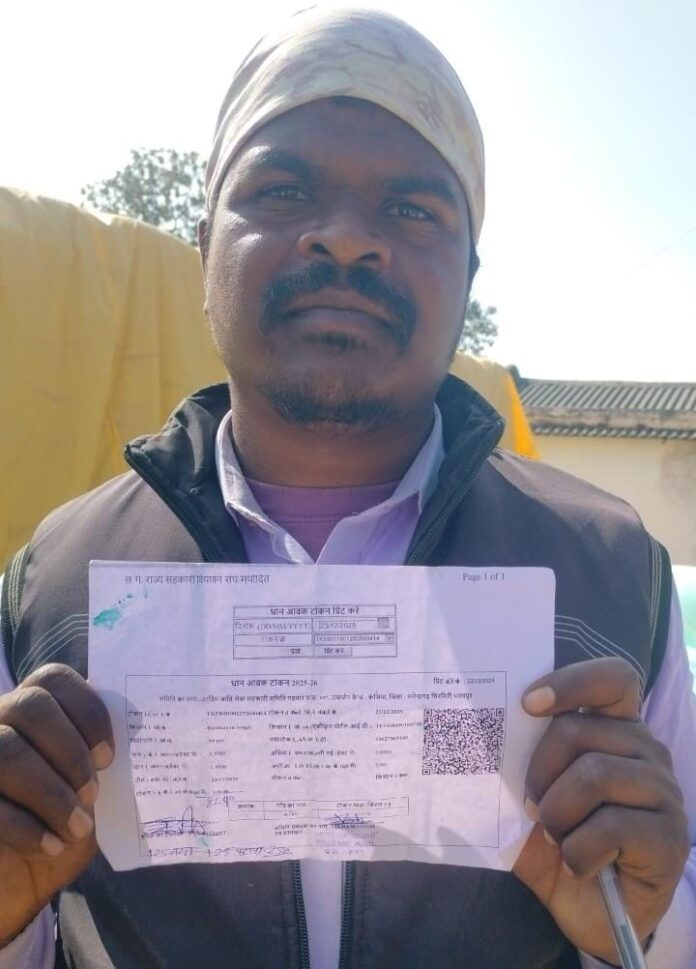 खरीफ विपणन वर्ष 2025-26 में रामकरण सिंह द्वारा कुल 100 क्विंटल धान का सफलतापूर्वक विक्रय किया गया। पूरी प्रक्रिया समयबद्ध, व्यवस्थित और बिना किसी रुकावट के संपन्न हुई। अपने पसीने की कमाई को पारदर्शी और सम्मानजनक तरीके से बिकते देखकर उनके चेहरे पर संतोष, गर्व और आत्मविश्वास स्पष्ट रूप से दिखाई दिया, जो इस बदली हुई व्यवस्था की सफलता का जीवंत प्रमाण है।
