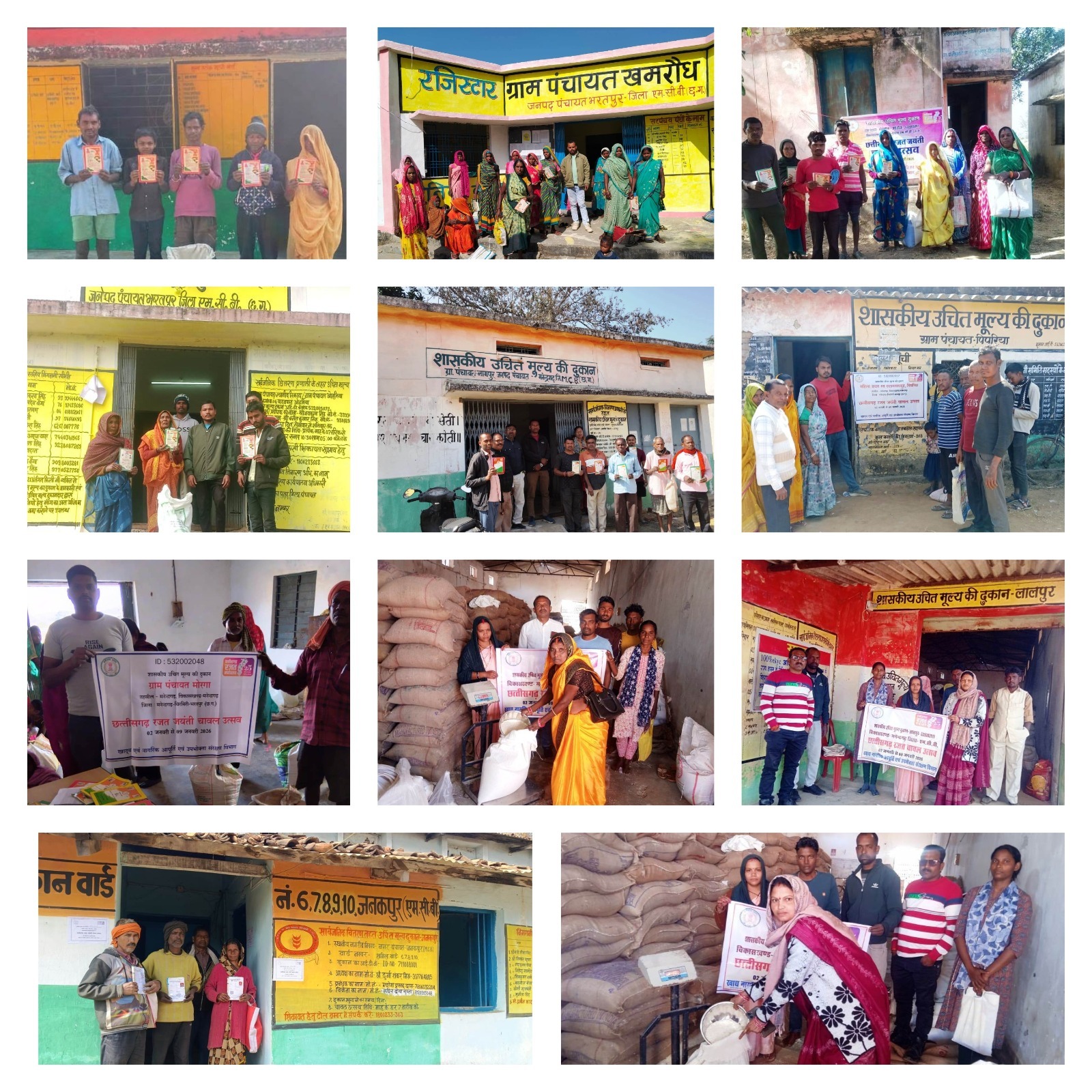 मनेंद्रगढ़ विकासखण्ड की समस्त शासकीय उचित मूल्य दुकानों में चावल उत्सव का आयोजन किया गया। कार्यक्रम में जनप्रतिनिधियों, निगरानी समिति सदस्यों, दुकान संचालकों एवं हितग्राहियों की सक्रिय सहभागिता रही। पात्र हितग्राहियों को नियमानुसार खाद्यान्न वितरण किया गया। साथ ही शेष राशन कार्डधारियों का ई-केवाईसी पूर्ण कराने हेतु विशेष अभियान भी संचालित किया गया। सभी दुकानों में सूचना बोर्ड एवं आवश्यक पंजी अद्यतन पाए गए।