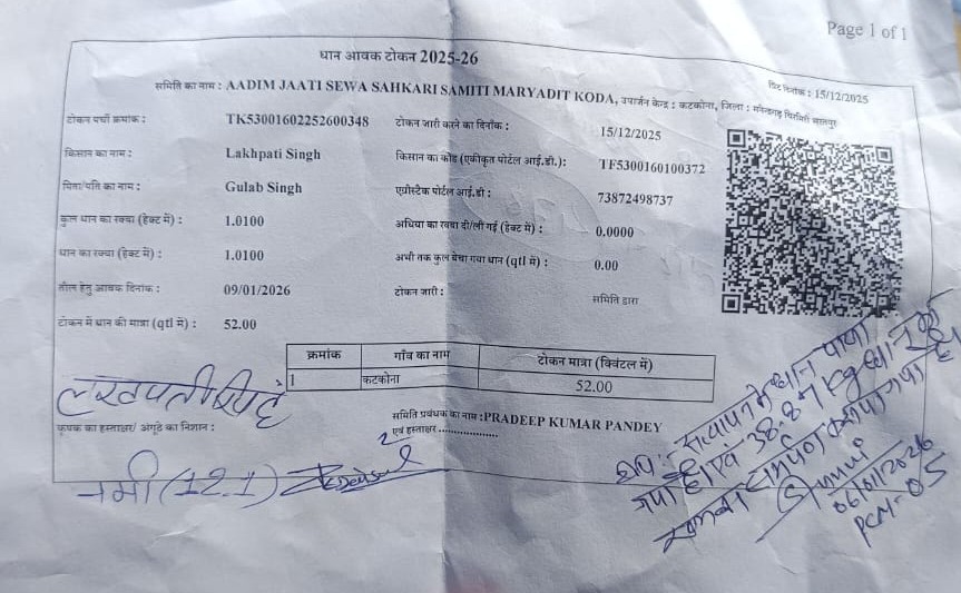 एमसीबी, छत्तीसगढ़। खरीफ विपणन वर्ष 2025-26 में लागू पारदर्शी और डिजिटल धान खरीदी व्यवस्था किसानों के जीवन में भरोसे का नया अध्याय लिख रही है। ग्राम कटकोना निवासी किसान लखपति सिंह की सफलता इस बदली हुई व्यवस्था की सशक्त मिसाल बनकर सामने आई है। लखपति सिंह ने कटकोना उपार्जन केंद्र में अपनी मेहनत की फसल के कुल 52 क्विंटल धान की सफल बिक्री की। शासन द्वारा निर्धारित 3100 रुपये प्रति क्विंटल समर्थन मूल्य तथा प्रति एकड़ 21 क्विंटल खरीदी की नीति के अंतर्गत उन्हें उनकी पूरी उपज का वाजिब और लाभकारी मूल्य प्राप्त हुआ, जिससे उनका आत्मविश्वास कई गुना बढ़ गया। लखपति सिंह का टोकन ऑफलाइन जारी किया गया था, फिर भी वे निर्धारित तिथि पर उपार्जन केंद्र पहुंचे और बिना किसी बाधा के धान विक्रय की पूरी प्रक्रिया सफलतापूर्वक पूरी हुई।
