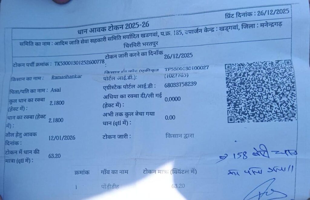 खरीफ विपणन वर्ष 2025-26 में रमाशंकर द्वारा कुल 63.20 क्विंटल धान का सफलतापूर्वक विक्रय किया गया। पूरी प्रक्रिया समयबद्ध, व्यवस्थित और बिना किसी रुकावट के संपन्न हुई। अपने पसीने की कमाई को पारदर्शी और सम्मानजनक तरीके से बिकते देखकर उनके चेहरे पर संतोष, गर्व और आत्मविश्वास स्पष्ट रूप से झलक रहा था, जो इस बदली हुई व्यवस्था की सफलता का जीवंत प्रमाण है।