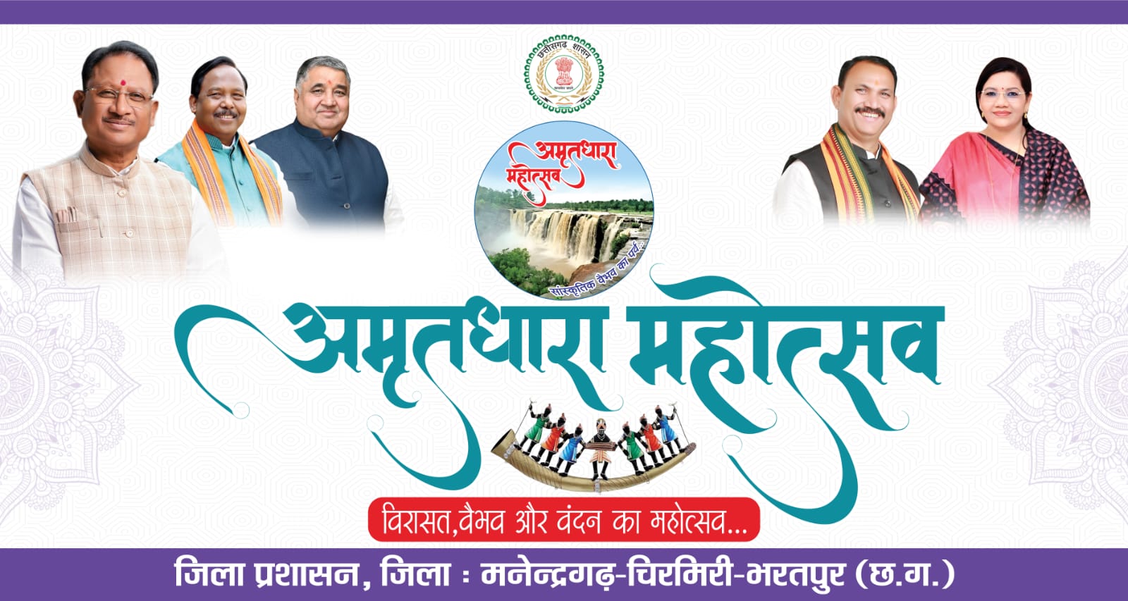 एमसीबी, छत्तीसगढ़। अमृतधारा महोत्सव 2026 का आयोजन 15 फरवरी 2026 को किया जाना प्रस्तावित है। उक्त महोत्सव के शुभारंभ के अवसर पर माननीय मुख्यमंत्री जी एवं अन्य विशिष्ट अतिथियों का आगमन संभावित है। कलेक्टर डी. राहुल वेंकट ने अमृतधारा महोत्सव की आवश्यक तैयारियों के संबंध में अपर कलेक्टर श्रीमती नम्रता आंनद डोंगरे को नोडल अधिकारी एवं लिंगराज सिदार संयुक्त कलेक्टर एवं अनुविभागीय अधिकारी (रा.) मनेन्द्रगढ़ को सहायक नोडल अधिकारी नियुक्त किया है। साथ ही विभिन्न विभागों के अधिकारियों को भी दायित्व सौपें गये हैं।