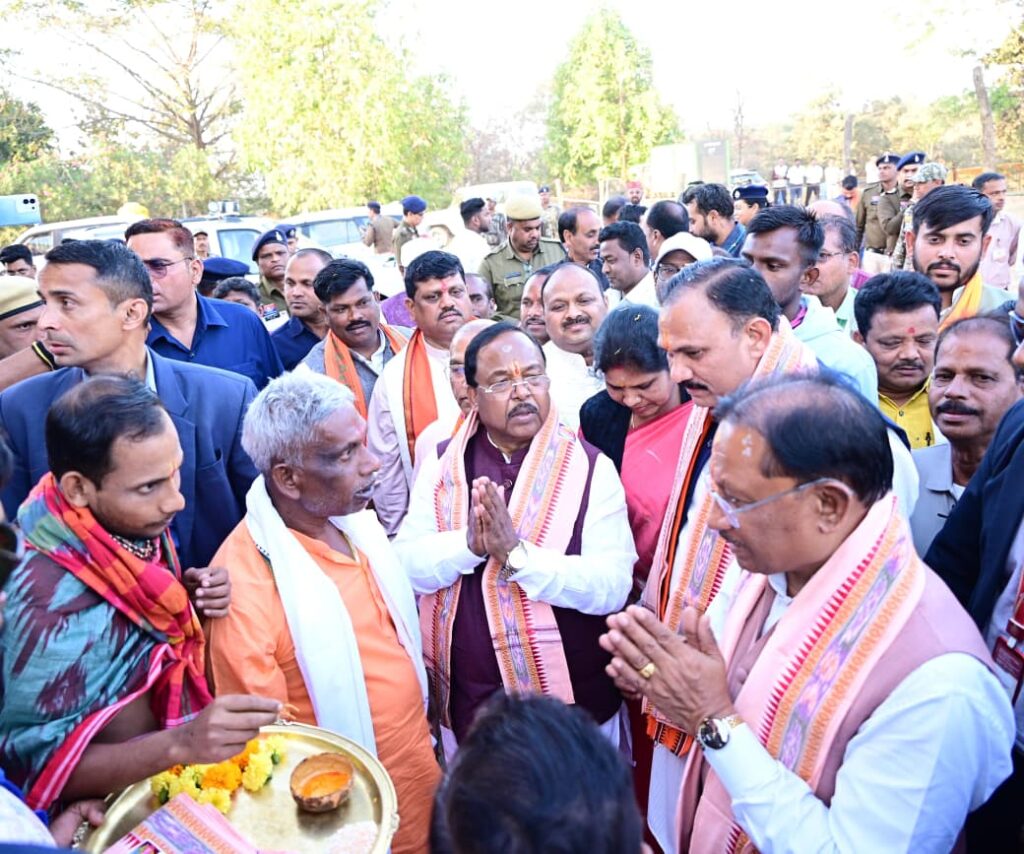 एमसीबी, छत्तीसगढ़। चिरमिरी की ऐतिहासिक और सांस्कृतिक धरती ने आज विकास, आस्था, जनविश्वास और जनसमर्पण का अभूतपूर्व संगम देखा, जब छत्तीसगढ़ के मुख्यमंत्री विष्णुदेव साय, एमसीबी जिले के प्रभारी मंत्री रामविचार नेताम तथा स्वास्थ्य मंत्री श्याम बिहारी जायसवाल मालवीय नगर, पोड़ी स्थित मंगल भवन पहुंचे। बैकुंठपुर विधायक भईया लाल राजवाड़े, कलेक्टर डी. राहुल वेंकट और पुलिस अधीक्षक रतना सिंह सहित जनप्रतिनिधियों, गणमान्य नागरिकों और अधिकारियों ने आत्मीयता एवं गरिमामय वातावरण में उनका स्वागत किया। पारंपरिक वेशभूषा में सुसज्जित महिलाओं ने कलश धारण कर चंदन तिलक एवं पुष्पवर्षा के साथ मुख्यमंत्री एवं अतिथियों का अभिनंदन किया। दीप प्रज्ज्वलन के साथ कार्यक्रम का विधिवत शुभारंभ हुआ और राष्ट्रगान के सामूहिक गान से वातावरण राष्ट्रभक्ति से ओतप्रोत हो उठा।
