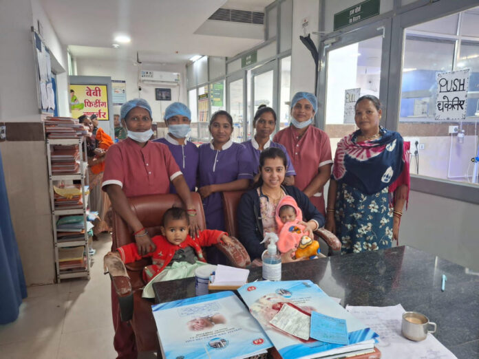 जहां 12 दिनों तक गहन निगरानी में उपचार जारी रहा। उपचार के दौरान शिशु में सेप्सिस एवं गैस्ट्रोइंटेस्टाइनल ब्लीडिंग जैसी जटिलताओं की पहचान हुई। चिकित्सकीय टीम ने तत्परता से उच्च श्रेणी के एंटीबायोटिक तथा आवश्यकतानुसार फ्लुकोनाजोल प्रदान किया। बार-बार आने वाले दौरों को नियंत्रित करने के लिए फेनोबार्बिटोन/फेनाइटोइन दवाएं दी गईं। चिकित्सकों की विशेषज्ञता, संवेदनशीलता और सतत निगरानी ने इस नन्हीं जान को सुरक्षित रखा। लगातार 18 दिनों के गहन उपचार के बाद शिशु की स्थिति में सुधार होने लगा। स्थिर होने पर 19वें दिन से 10 दिनों तक कंगारू मदर केयर (केएमसी) प्रारंभ की गई, जिससे शिशु के स्वास्थ्य में उल्लेखनीय सुधार हुआ। लगभग 27 दिनों के अथक प्रयासों के पश्चात शिशु को पूर्णतः स्थिर अवस्था में छुट्टी प्रदान की गई।
