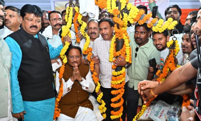 रायपुर, छत्तीसगढ़। मुख्यमंत्री श्री विष्णु देव साय के जन्मदिन पर राजधानी रायपुर स्थित मुख्यमंत्री निवास देर रात तक उल्लास और स्नेह के वातावरण से भरा रहा। प्रदेश के विभिन्न क्षेत्रों से आए नागरिकों, जनप्रतिनिधियों, प्रशासनिक अधिकारियों, उद्योगपतियों,समाजसेवियों और मीडिया प्रतिनिधियों ने मुख्यमंत्री को जन्मदिन की शुभकामनाएँ दीं। मुख्यमंत्री को जन्मदिवस के अवसर पर फलों से तौला गया। मुख्यमंत्री श्री साय ने सभी आगंतुकों से आत्मीयता से मुलाकात की और स्नेह, सम्मान और शुभकामनाओं के लिए कृतज्ञता व्यक्त की। उन्होंने कहा कि आप सभी के प्रेम और सहयोग से मैं अभिभूत हूँ। छत्तीसगढ़ के उज्ज्वल भविष्य के लिए हम सभी को मिलकर कार्य करना है। आपका निरंतर समर्थन और आशीर्वाद इसी तरह बना रहे, यही मेरी कामना है।